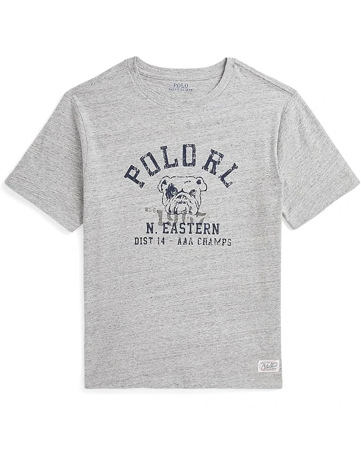 - Add a comfy touch to his casual style in the Polo Ralph Lauren® Kids Cotton Jersey Graphic Tee. This pull-on style shirt features a crew neckline, short sleeves, “Polo RL” and a bulldog printed at the center front, and a “Polo RL” label at the left hem.